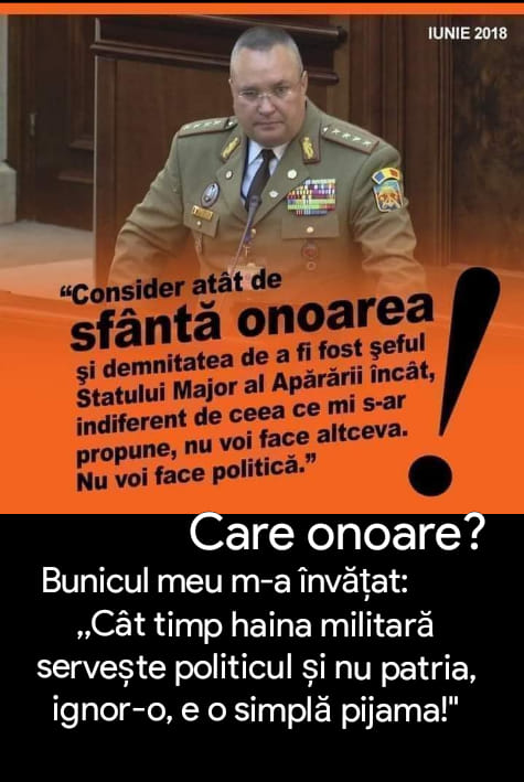 รntre tรฎlhฤriile, barbarismele ศi crimele nu foarte cunoscute, ale aceloraศi criminali, contra Dreptului Internaศional, se numฤrฤ promisiunea fฤcutฤ ศฤrii noastre de a nu se extinde Pactul NATO, nici mฤcar cu un centimetru, spre Est. รncฤ o datฤ, Statele Unite ศi Pactul Nord-Atlantic ne-au tras pe sfoarฤ, ne-au pฤcฤlit, pur ศi simplu. Adesea auzim cฤ politica este o treabฤ murdarฤ. Tot ce se poate. Mai murdari รฎnsฤ, mai neobrฤzaศi, mai setoศi de sรขnge, mai barbari ศi mai cu zece feศe ca Statele Unite ศi Pactul Nord-Atlantic nimeni altcineva nu este ศi nu a fost vreodatฤ pe lume..