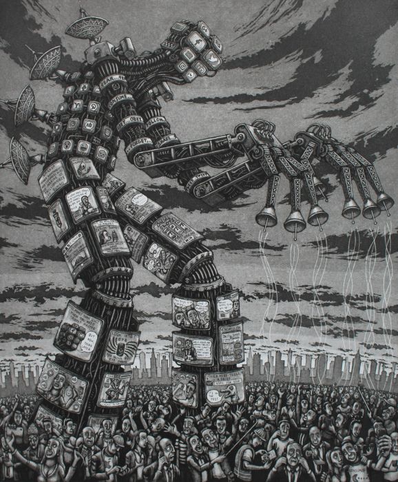 Pentru a atinge acest scop, elita a preluat controlul asupra tuturor canalelor media (radio, televiziune, ziare) care formează un sistem prin care se proiectează viziunea sa asupra lumii transmițându-și totodată influențele către toate straturile societăților occidentale.