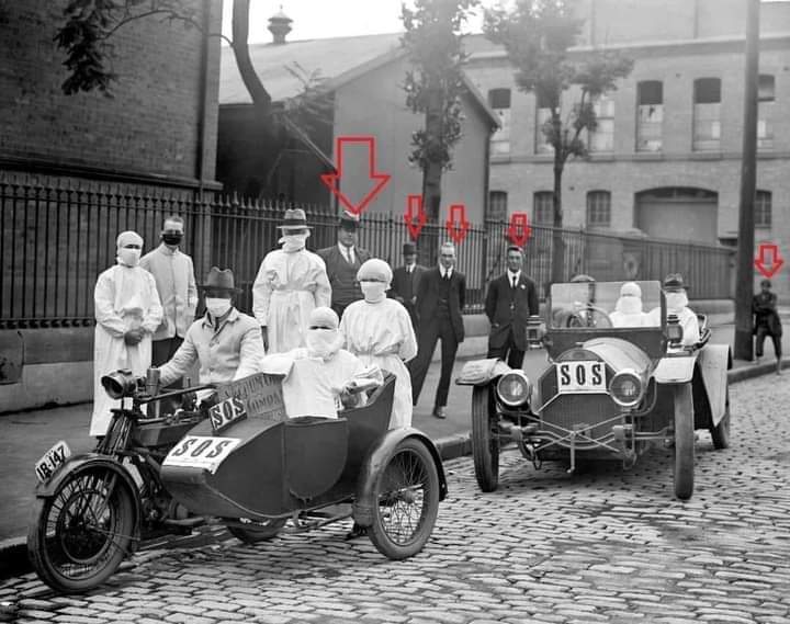 Fotografia reprezintă “pandemia” gripei spaniole din 1918. Atunci chiar era o adevarata problemă, însă acum cu planul Noii Ordini Mondiale a fost propice și bine pusă la punct; anul trecut in primele 2 luni chiar am fost credul sa cred in aceasta așa zisa “pandemie”, iar pe urma am aflat care-i treaba cu vaccinurile și cu maștile “protectoare de covid” e o prefăcătorie această pandemie pe care am trăit-o de anul trecut pana acum. E o înșelăciune globală iar cei responsabili pentru aceasta mascaradă trebuie sa plătească cu vârf și îndesat.