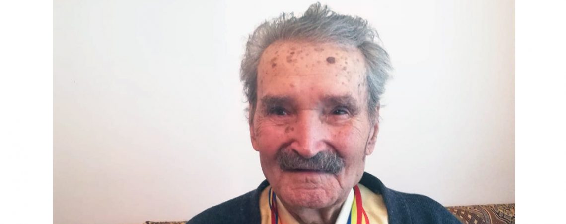 ?Ž??i poartÄ? cu demnitate infirmitatea, la cei 97 de ani ai sÄ?i, ??i e m??ndru de ceea ce a reu??it sÄ? realizeze: o familie ??i doi copii.
