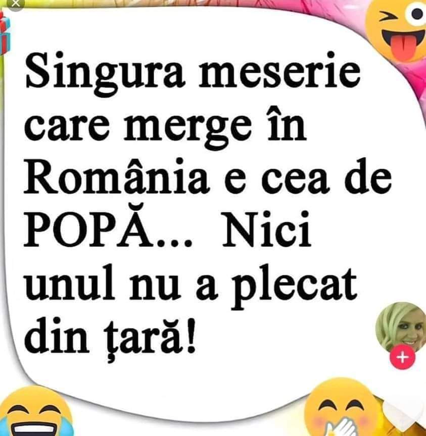 O tipa se duce la coafor. În timp ce îi lucrează la păr coafeza începe discuția. - Care e ocazia, iubita? Nuntă, botez, iubit nou? - Soțul meu mă duce la Roma cu ocazia aniversării noastre. - La Roma, iubita? Păi e o vreme nasoală acum. Plouă non-stop. Cu ce zburați? - Cu Air Lasagna. - Cu Air Lasagna, iubita? Numai probleme au, n-ai auzit la radio? Unde vă cazați? - La Continental. - La Continentaaal? Iubita, am stat acolo, e îngrozitor. Condiții mizerabile! Și ce vreți să vedeți voi la Roma? - Păi orașul, poate ajungem și la Vatican să îl vedem pe Papă. - Pe Papă? Iubita, nu îl vedeți decât cu telescopul, crede-mă, Roma e o idee proastă. Trec câteva săptămâni. Tipa se reîntoarce la coafor. - Ce faci, iubita, ați fost la Roma? - Mhm. - Și cum a fost? - Păi Air Lasagna tocmai și-a schimbat flota de avioane. Am zburat la clasa întâi si ne-am îmbăiat în șampanie și caviar. - Hmm. Și hotelul? - Cu o zi înainte sa ajungem îl terminaseră de renovat. Condiții superbe. - Vremea? - Minunată. - Dar pe Papă nu l-ați văzut, așa-i? - Culmea, când am intrat in Vatican m-am împiedicat de o piatră, am căzut, se pare că Papa chiar atunci se uita pe geam, m-a văzut și a trimis imediat garda să mă ia și să mă duca la el în cameră, să mă binecuvânteze și să îmi dea cu rivanol. - Extraordinar! Ai vorbit cu Papa? - Da. - Și ce ți-a zis? - M-a întrebat cine mi-a făcut coafura asta de rahat!?